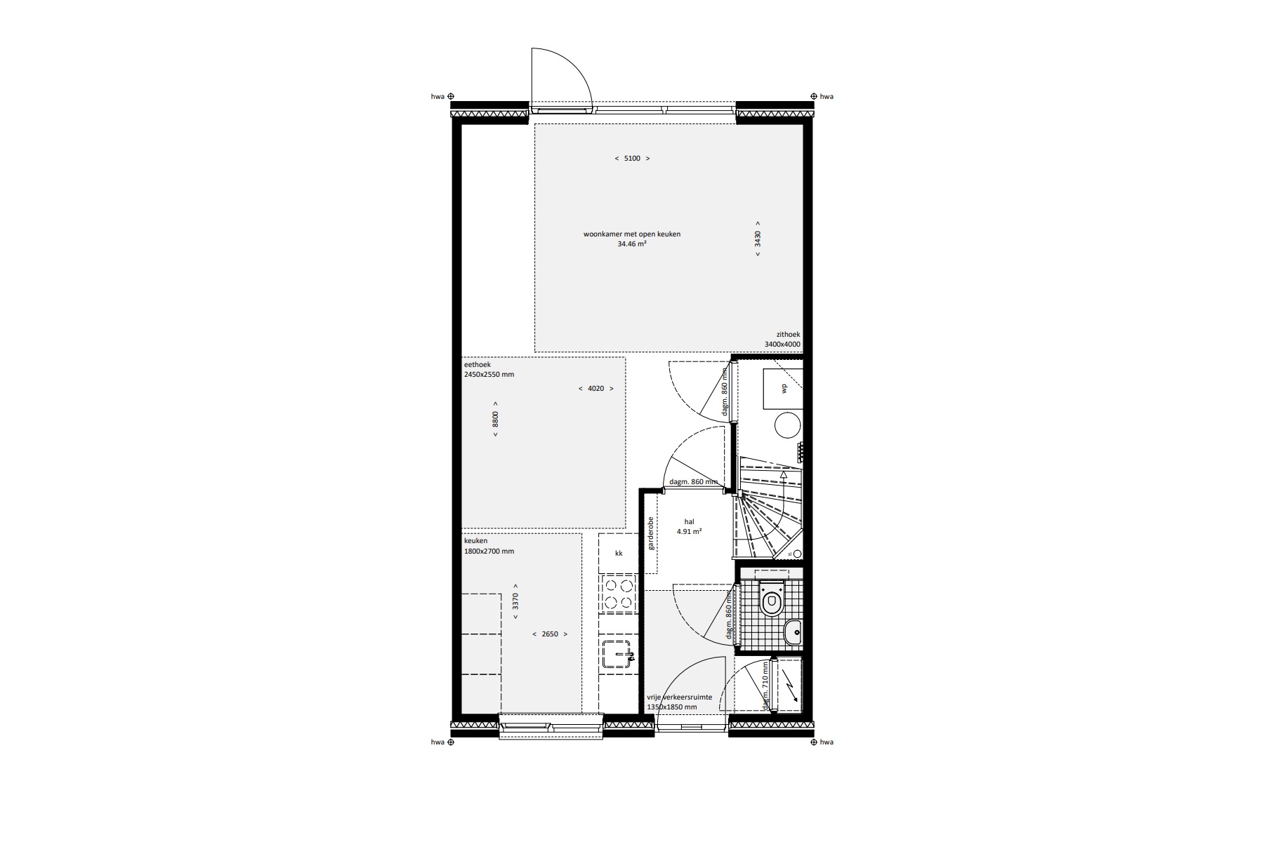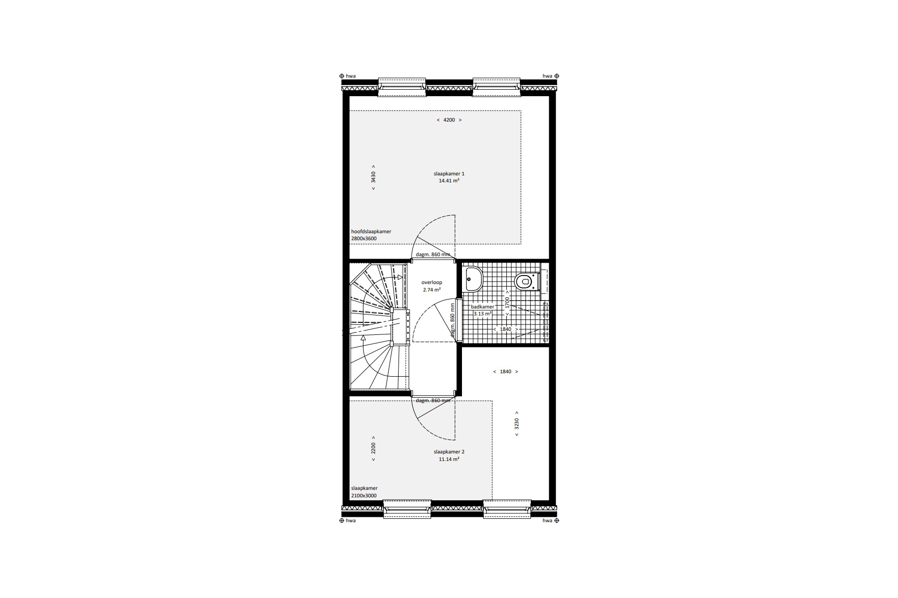 | Dakkapel(len) | Mogelijk (bij hellend dak) |