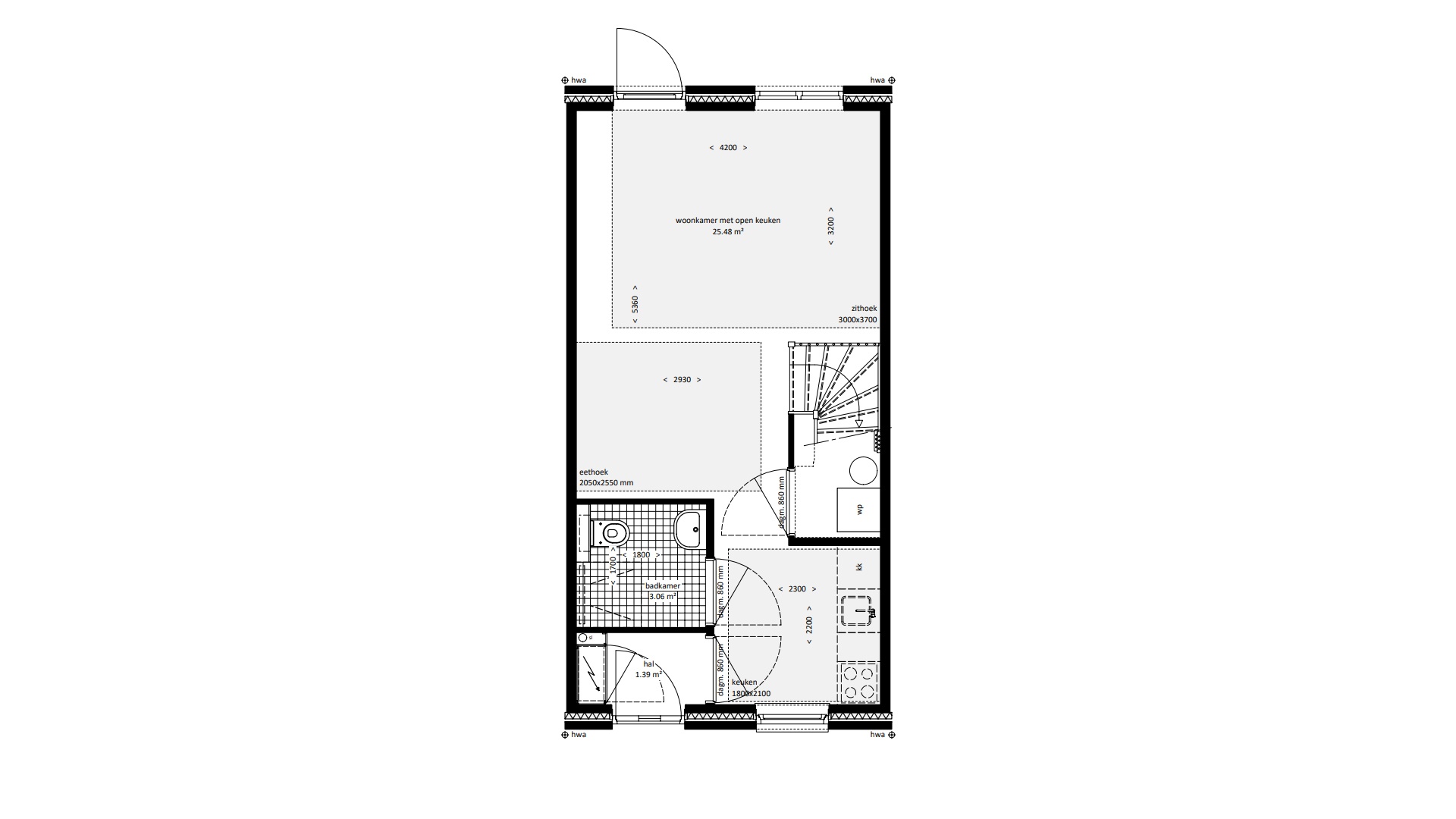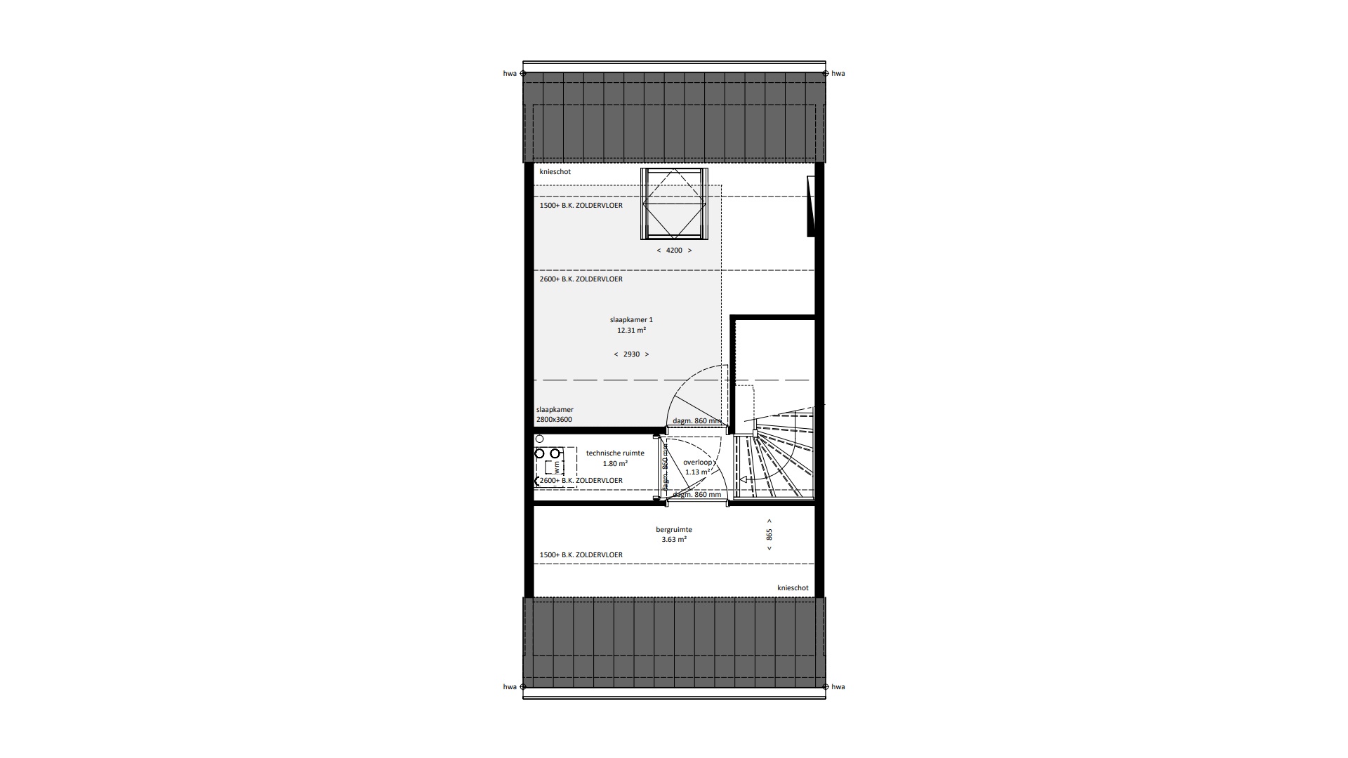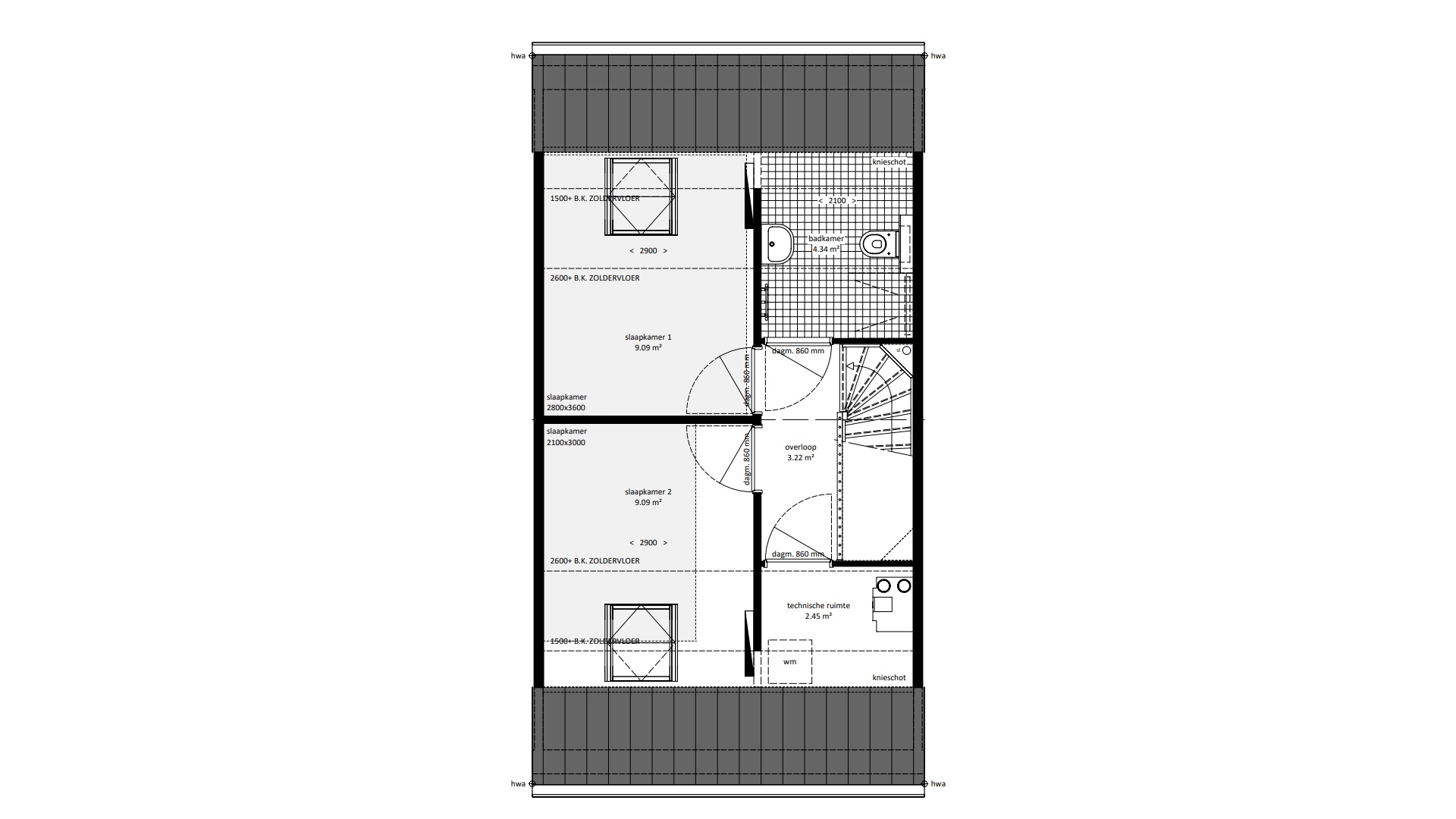 | Dakkapel(len) | Mogelijk (bij hellend dak) |