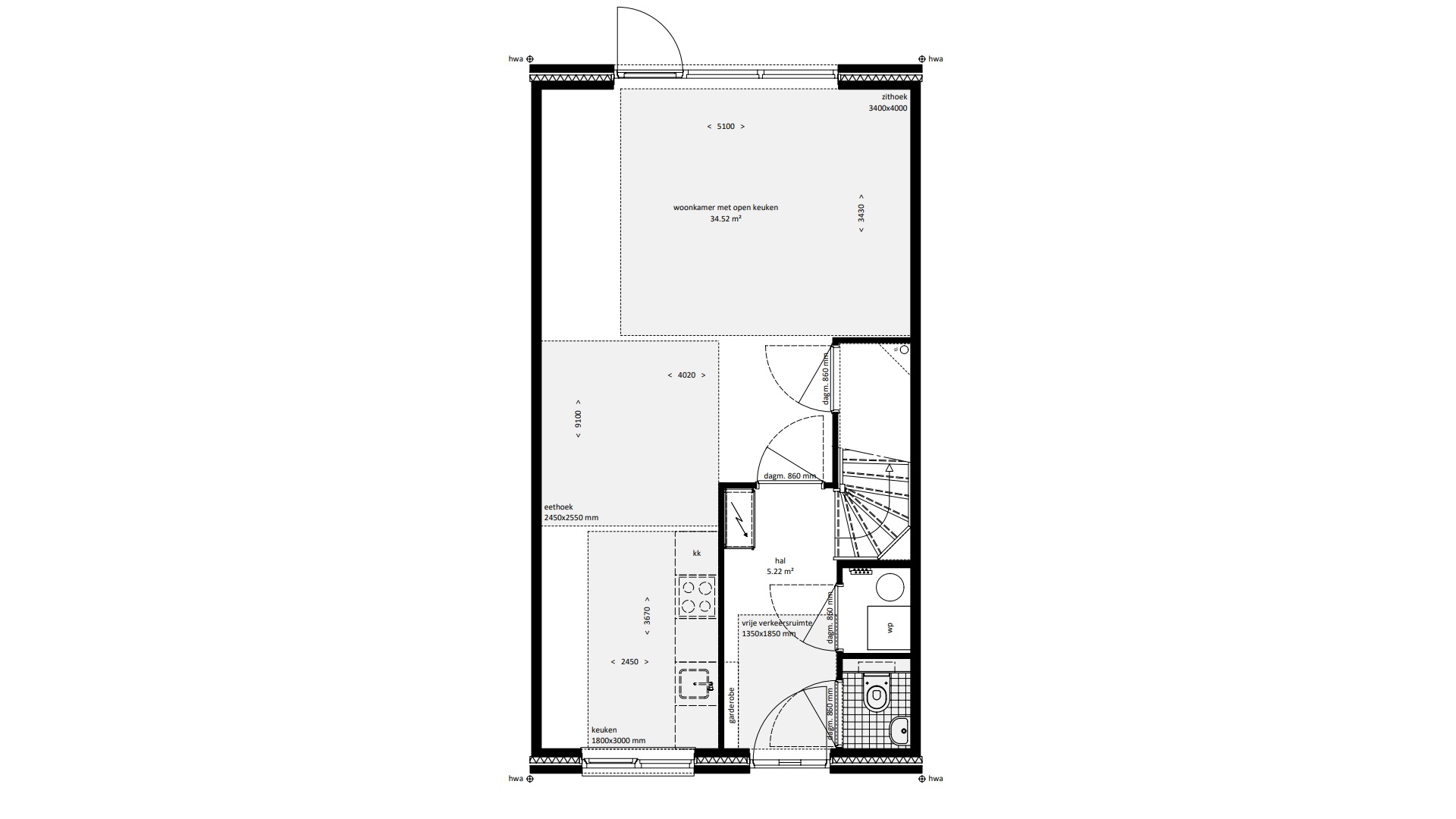 | Uitbouw 2.400 mm | Mogelijk |